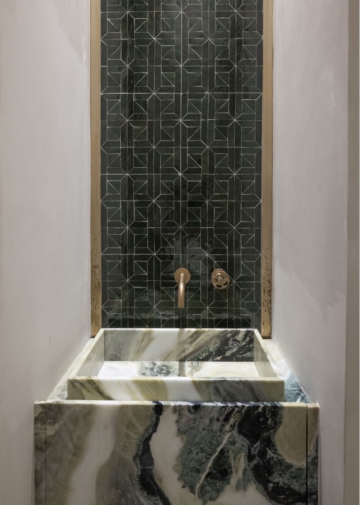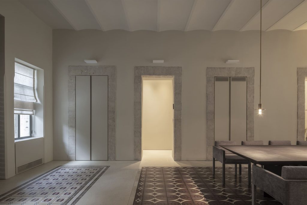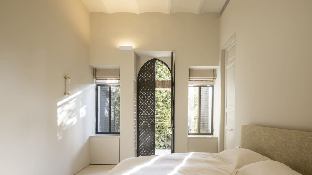 במהלך תהליך העבודה, התקבלו החלטות מדויקות לגבי אילו פרטים יישמרו, ובאיזה אופן. התקרה הגלית המקורית, למשל, שומרה וכך גם תריסים ואלמנטים היסטוריים נוספים כמו אריחים מצוירים מקוריים שהוטמעו בעיצוב החדש. "כל אריח סומן, פורק והוחזר למקומו. במקומות שבהם הריצוף נהרס או היה חסר, השלמנו ביציקת טרצו. כך נוצרה מסגרת שקטה שבתוכה שטיחים מצוירים