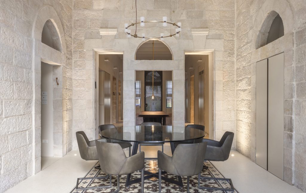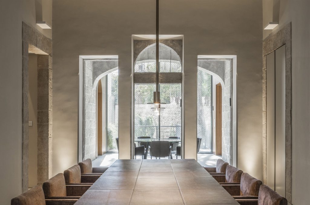 כאשר משפצים מבנה קיים, ובוודאי כאשר מדובר במבנה לשימור, השאלה המרכזית היא כיצד תשתלב הבנייה החדשה במה שכבר קיים. במקרה הזה, במקום לטשטש את החיבור בין הישן לחדש וליצור מראה הומוגני, הוחלט דווקא להדגיש את המפגשים באמצעות חיפויי עץ ונגרות, הממשיכים את הבנייה ההיסטורית באבן. "לא ניסינו לחקות את השכבה הקיימת ולהיטמע בתוכה. השכבה החדשה נבנתה בטכנולוגיות ובחומרים עכשוויים, והיא מחזקת את הנוכחות של השכבה ההיסטורית. כל אחת נוצרה בתקופה אחרת, והצופה, שאינו יודע מה נבנה מתי, רואה את השכבות החשופות. השוני ביניהן יוצר אסתטיקה חדשה."