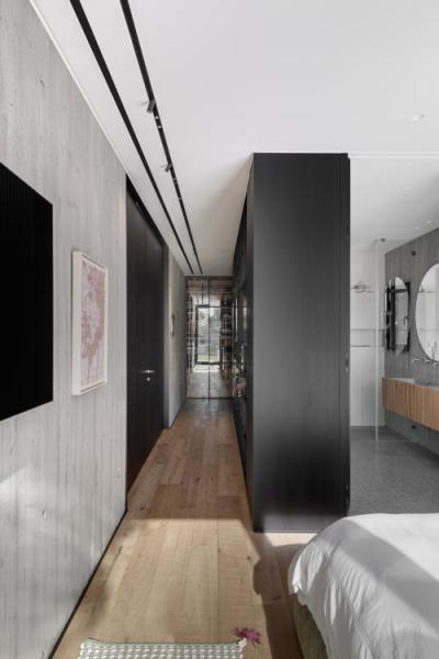 פרט נוסף ששווה להזכיר ביחידת ההורים הוא הדלת שבין אזור השינה לאזור הרחצה, שתוכננה בעקבות בקשה להכניס אור טבעי רב ככל האפשר גם לחדר הרחצה שבו חלון קטן יחסית.