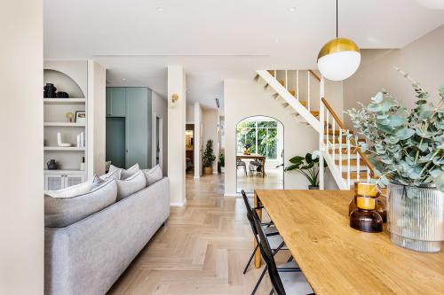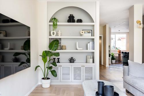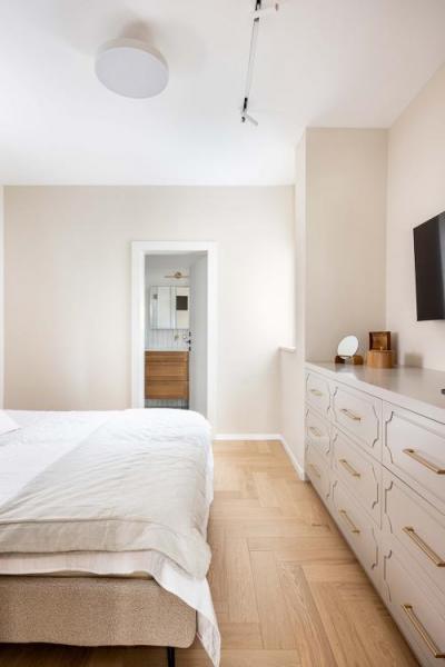 הלקוחה, מעצבת גרפית עם טעם מגובש, פנתה לבטי עם סגנון עיצובי ברור אותו שאפה ליצור בדירה המשופצת: "בשיחה הראשונה היא הציגה בפני את הסגנון והחיבור היה מיידי. הסטייל הוא אמריקאי נצחי, שנע על הציר בין האמריקאי לנורדי". בעיצוב שולבו פרטים עשירים בהשראת הסגנון, כמו הספרייה בסלון שבולטת בזכות קשת מרשימה, וחזית שידת המגירות בחדר השינה הזוגי, שקושטה במסגרות מעוטרות. למרות חששות שהעלתה הלקוחה תוך כדי התהליך, הדבקות בסגנון העיצובי והביטחון שסיפקה לה בטי השתלמו. אלו הפרטים שמושכים את העין ונותנים למרחב אופי ייחודי, חם ומזמין.