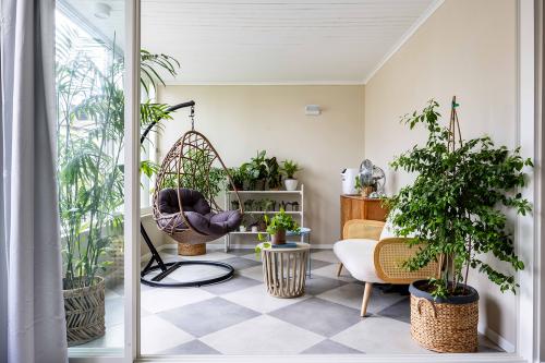 מעין מרפסת פנימית תוכננה ואובזרה בעציצים רבים כדי לספק לבני המשפחה מקום מפלט מרגיע. "במסגרת השיפוץ נבנו מחדש כל קירות הפנים והוחלפו הדלתות, לרבות דלת הכניסה. נבחרו דלתות פנים לבנות ונקיות בתוספת ידיות שחורות, שמקפיצות את הדלתות ומספקות קונטרסט. "בחרנו בדלתות של רב בריח. "אני מאוד אוהבת לעבוד איתם כי הם נותנים שירות מעולה ללקוחות" אומרת בטי, ומעבירה אותנו ישירות לטיפ החשוב הבא –