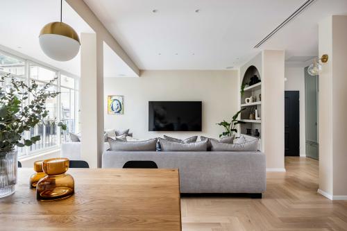 הדירה שרכשו בני הזוג מחולקת לשתי קומות, שכל אחת מהן בגודל 100 מ"ר. מבחינת חלוקת הפנים, האופציות היו רבות ומגוונות וחלק עיקרי בתהליך היה בניית הפרוגרמה הנוכחיות והעתידית – "היו הרבה התלבטויות איך החיים שלהם הולכים להיראות עכשיו וגם שנים קדימה.